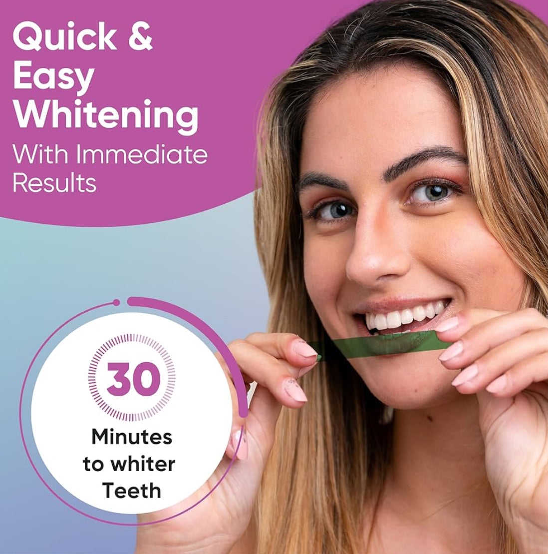 Whiten your teeth faster using these strips than any other strips you can use for your teeth! Put these strips on your teeth for 30 minutes and see all the visible stains on your teeth fade dramatically and with consistent use you teeth will be fully white!
